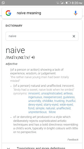 Naive as a adjective means lacking worldly experience and understanding, especially:. Or rather a naïve of the meuse. Naive meaning has been search 2737 (two thousand seven hundred and thirty.